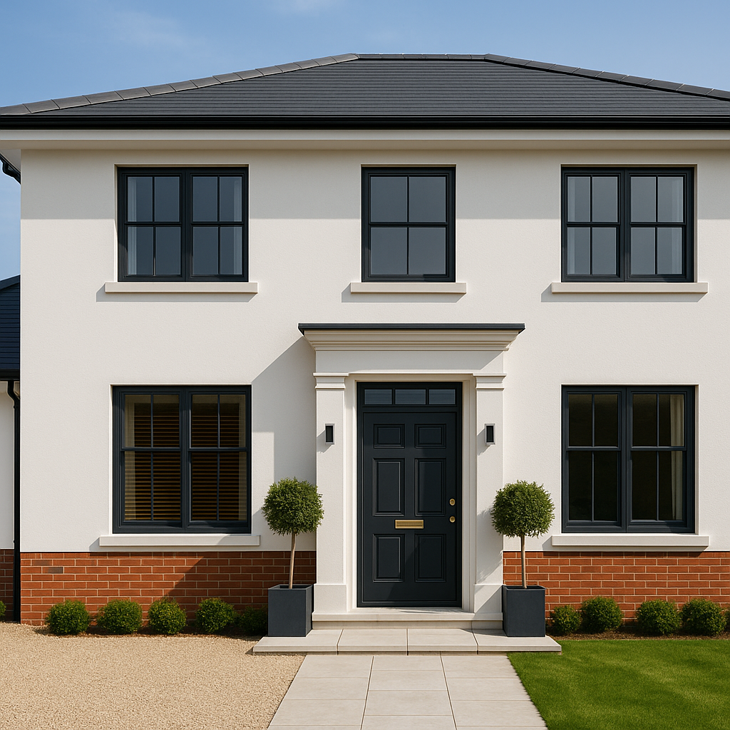 Efekt? Elegancki front domu, który łączy klasykę z nowoczesnością – idealny dla osób ceniących spójność i ponadczasowy styl.