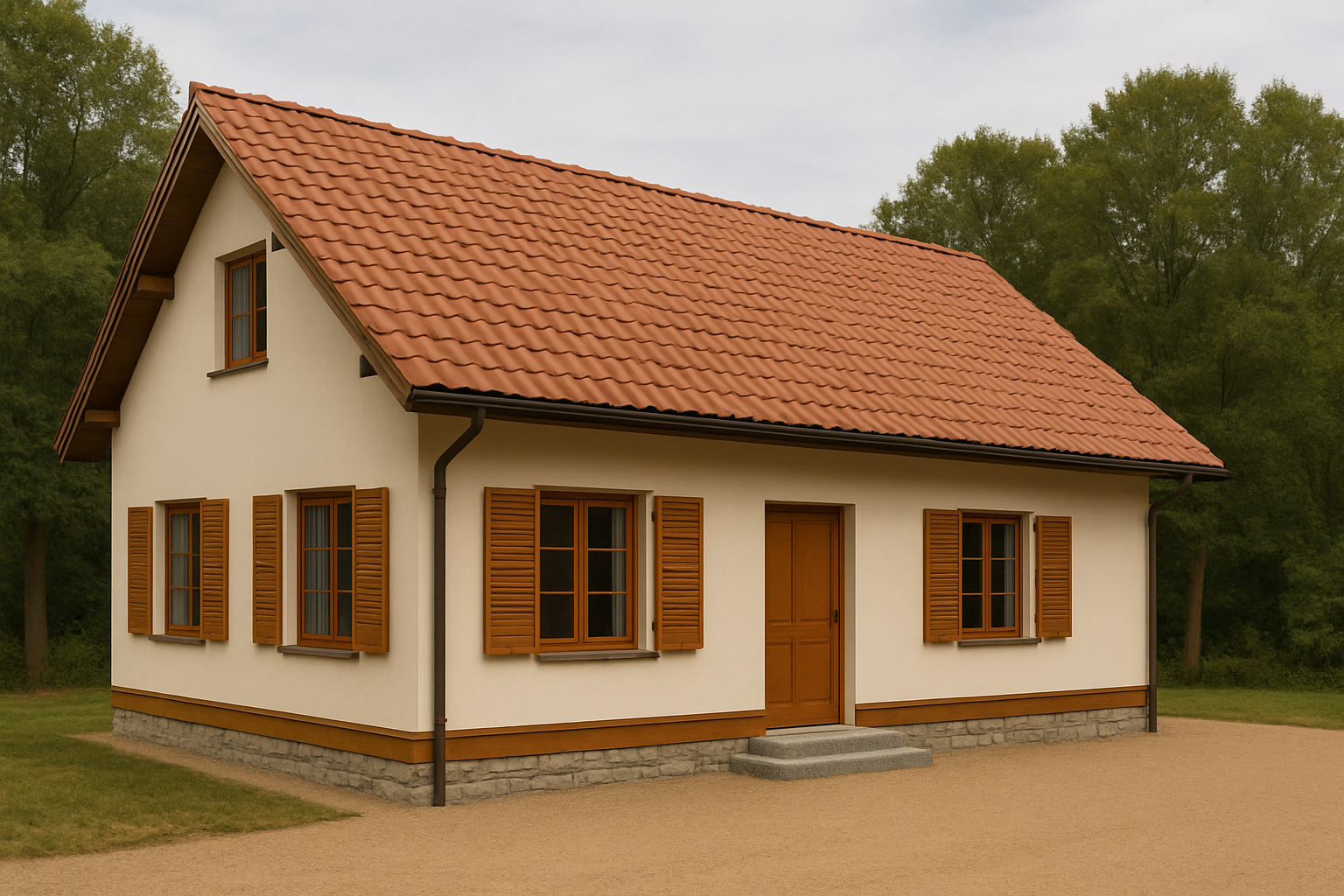 Tynk mineralny, silikonowy czy strukturalny to wciąż najpopularniejsze rozwiązania stosowane na elewacjach domów jednorodzinnych. Na tle takiej powierzchni drewniane okiennice wprowadzają naturalny kontrast i ożywiają bryłę budynku. Jasne tynki – białe, beżowe czy piaskowe – doskonale współgrają z ciepłymi tonami drewna, natomiast ciemniejsze elewacje zyskują głębię i elegancję w zestawieniu z jasnymi okiennicami.