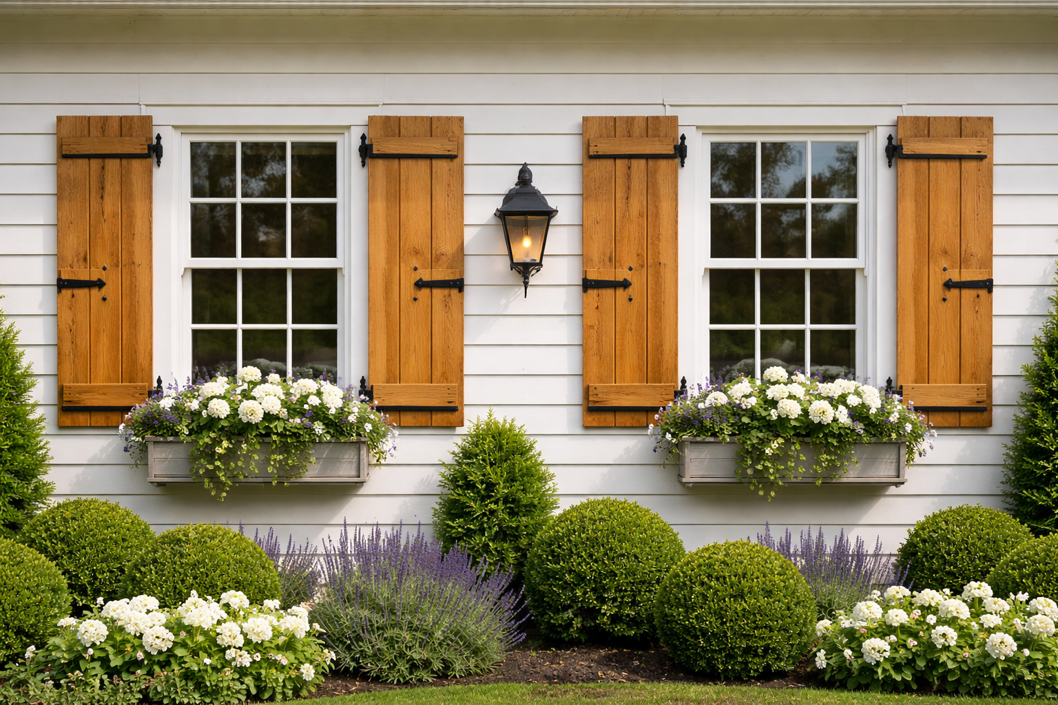 To forma, a nie ornament, decyduje o tym, czy okiennice wpiszą się w nowoczesną bryłę. Proste skrzydła, jednolita płaszczyzna drewna i czytelny rytm otworów okiennych pozwalają zachować spójność architektury.