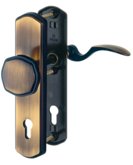 - une crémone de la société allemande FUHR verrouillée avec quatre crochets en acier RC 3.